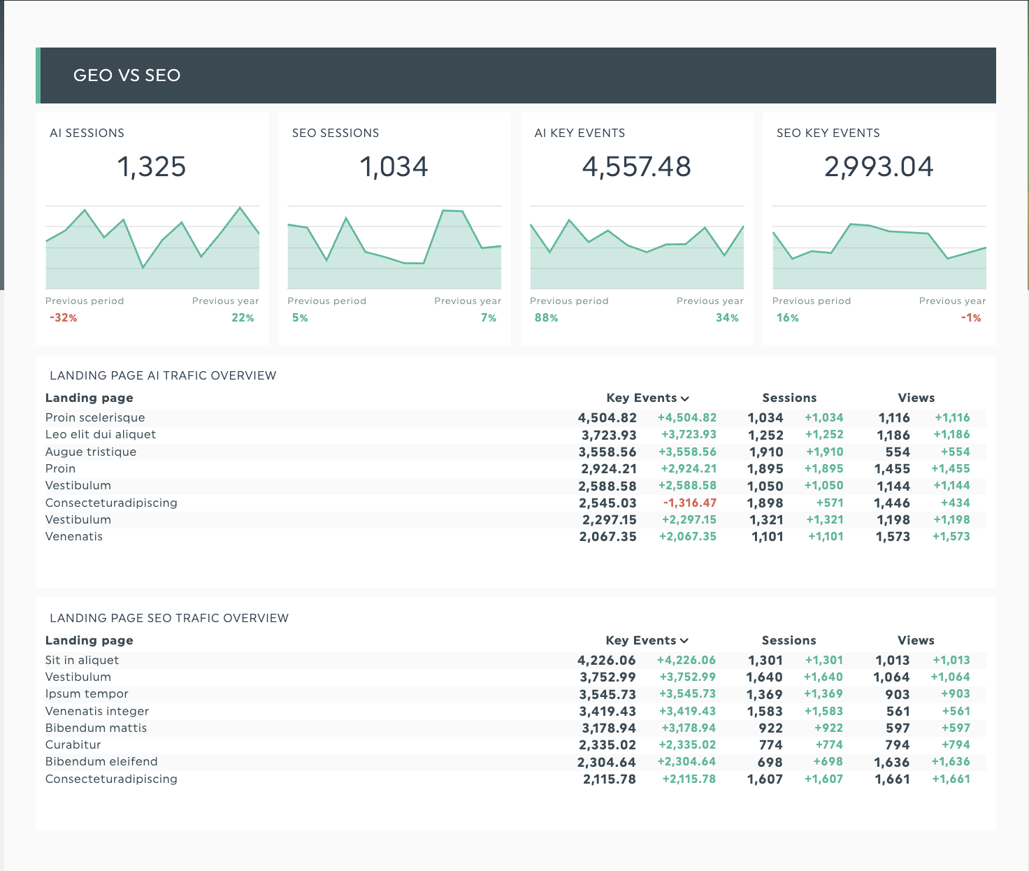 While our AI report template tracks traffic from AI tools, this guide focuses on using AI as a competitive advantage to help you analyze and understand your marketing data more effectively to stay ahead of future trends and future-proof your reporting processes.