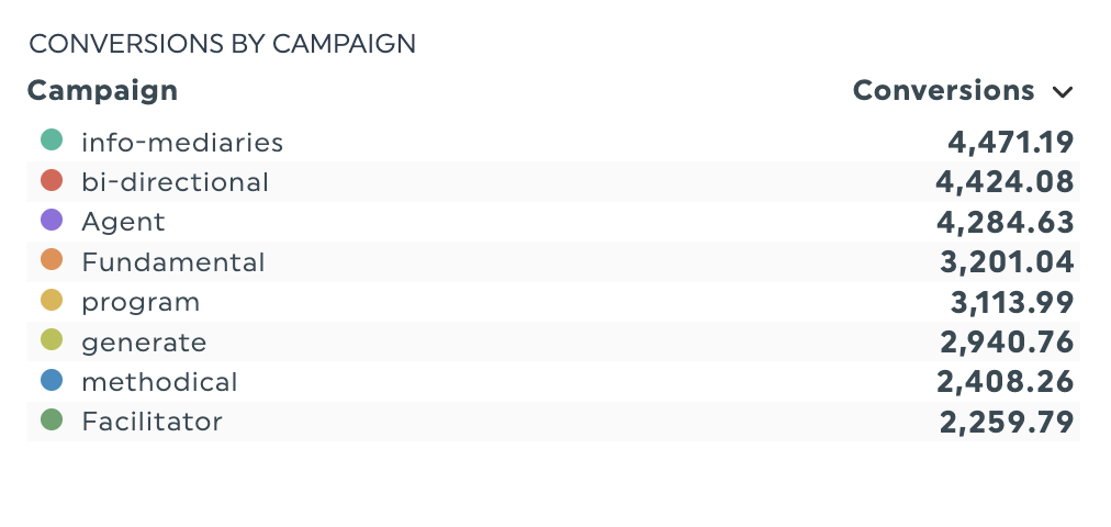 Use these tables to quickly compare metrics across advertising platforms and identify campaigns that drive the most conversions and attributed revenue, along with areas to improve.