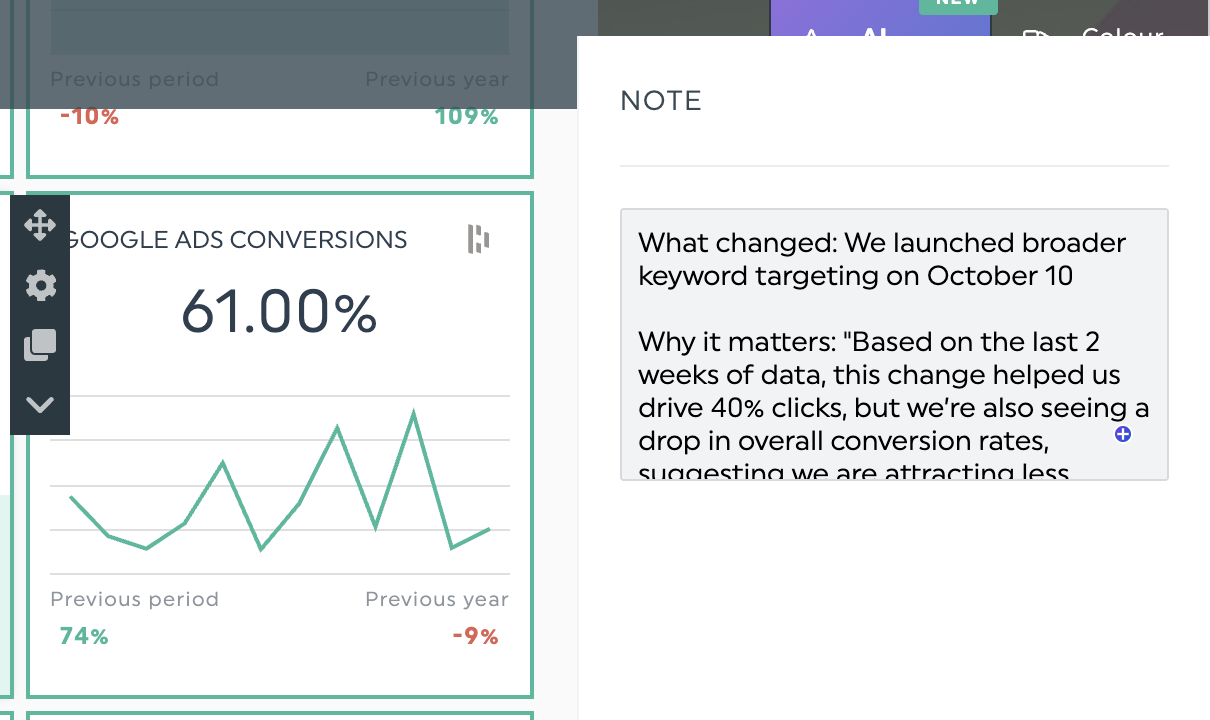 Use DashThis's comment and annotation tools to add the analysis neatly to your dashboard.